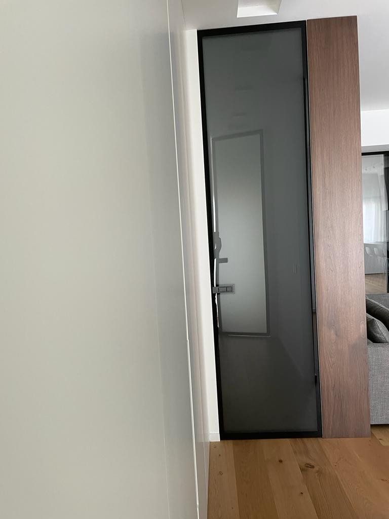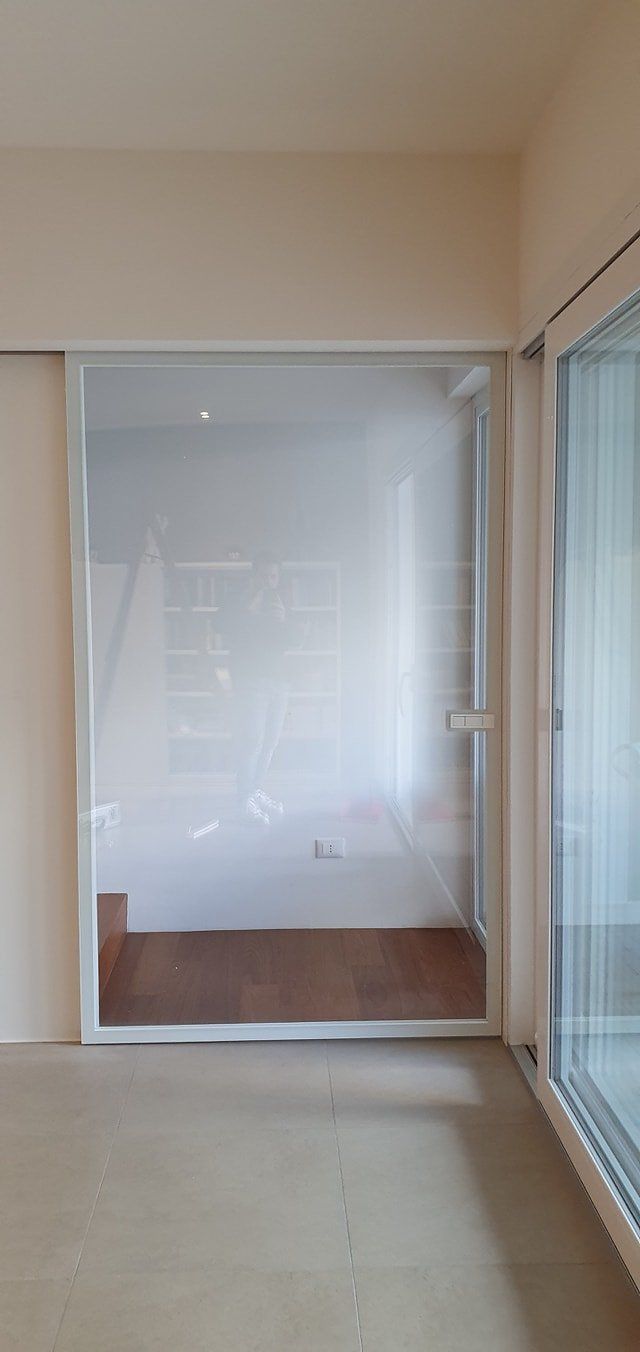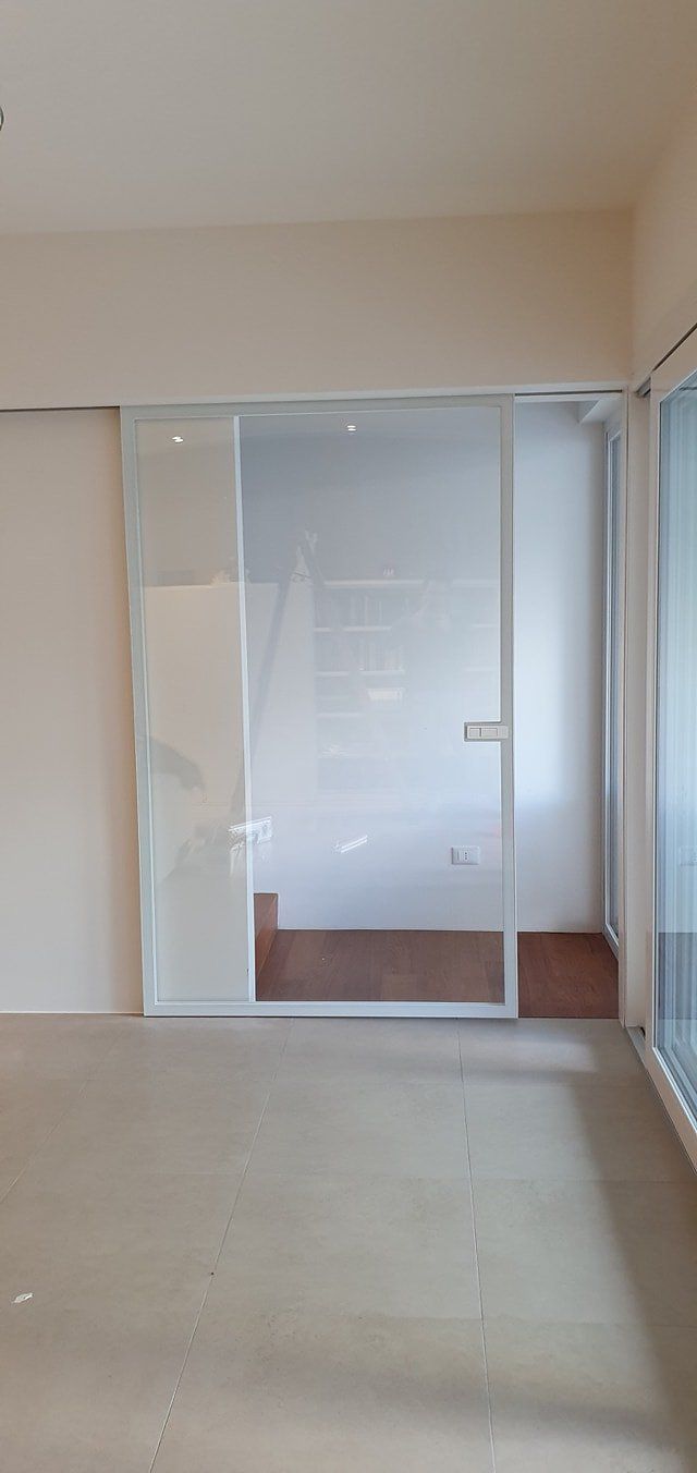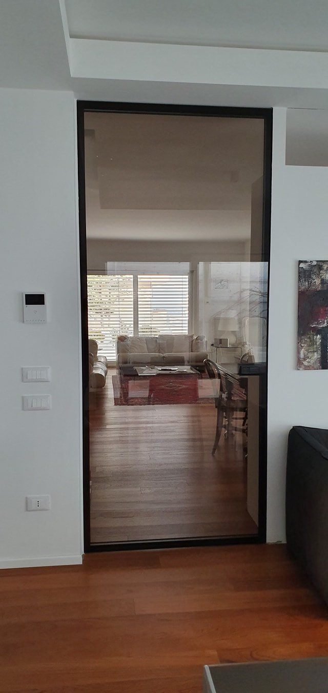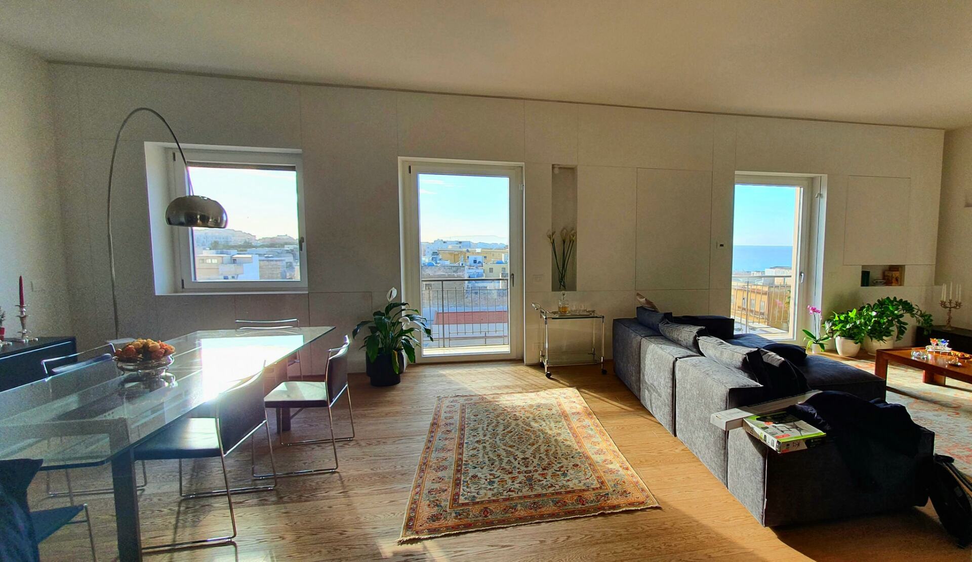 In un duplex dalla posizione favolosa, il living viene separato dalla cucina da ampie vetrate scorrevoli che grazie alla trasparenza rendono unico l'ambiente con eleganza.